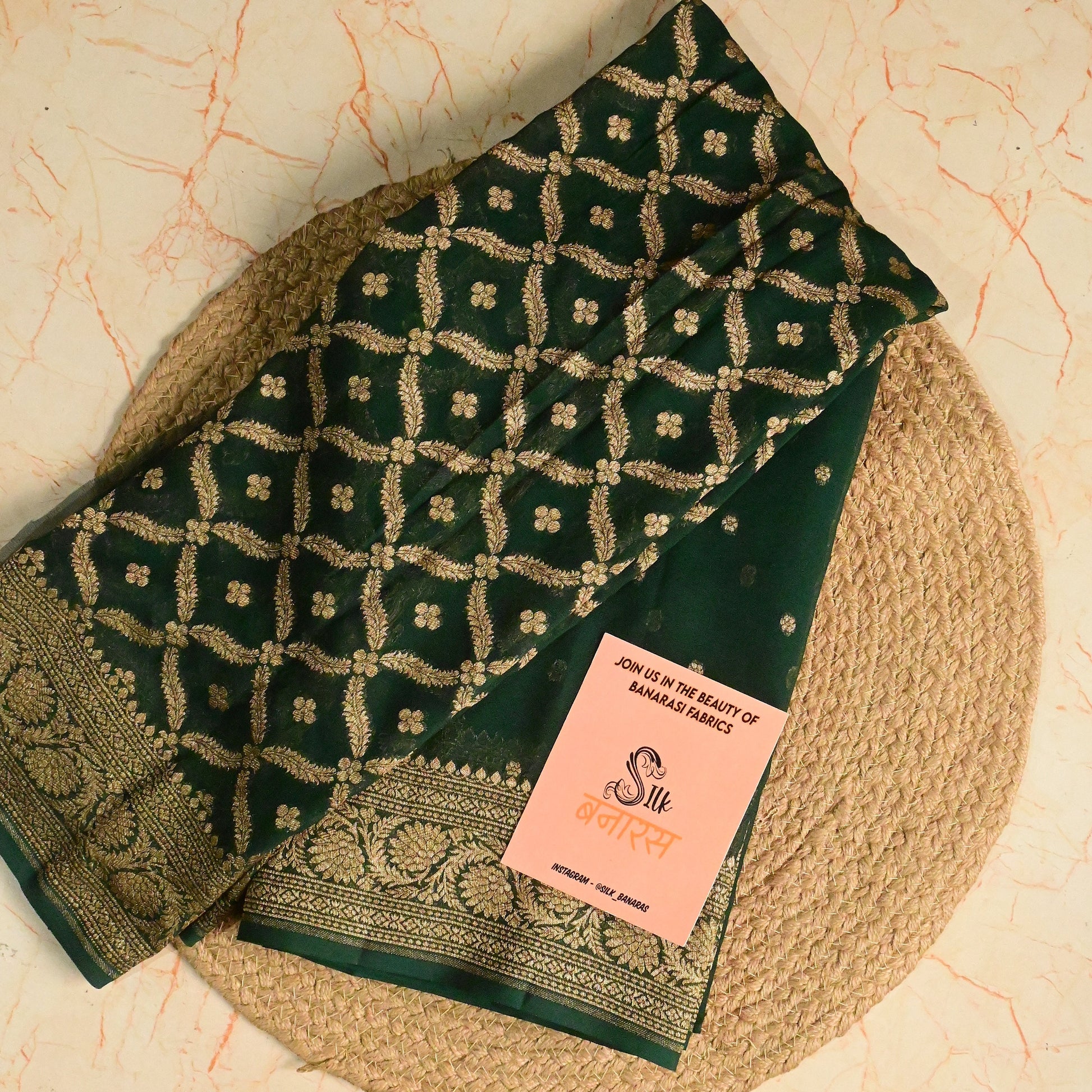 The bottom line: This is investment dressing at its finest. The emerald-gold combination is eternally elegant, and that pallu is a work of art. When you wear this, you're not just wearing a saree – you're wearing a piece of Banarasi heritage.
